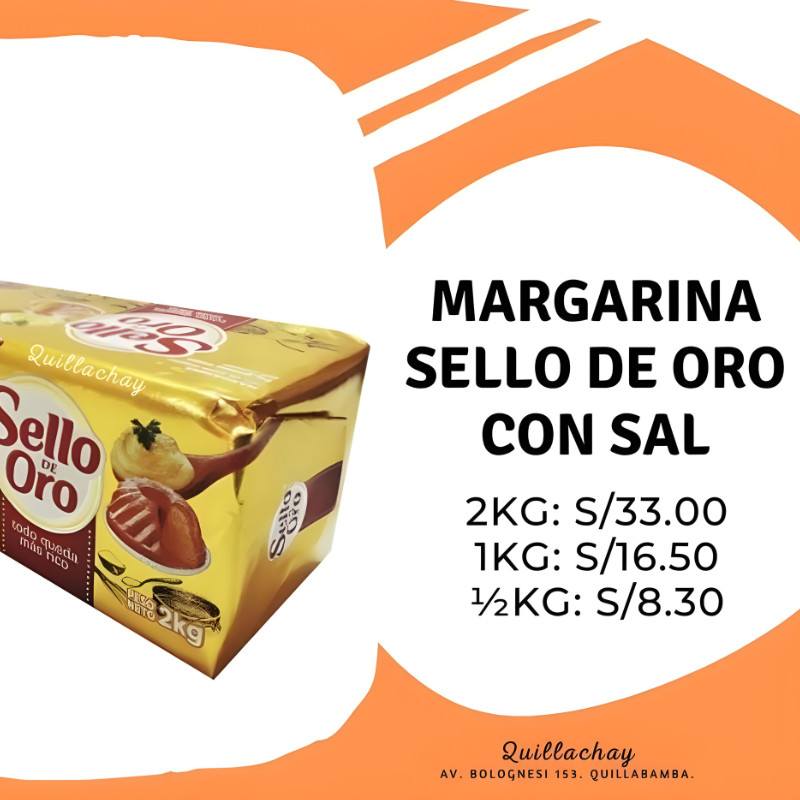 En Quillachay Insumos te ofrecemos la Mantequilla Margarina Sello de Oro con Sal, un producto versátil y de alta calidad, ideal para panaderías, pastelerías, reposterías, cafeterías y negocios de gastronomía. Su fórmula equilibrada combina excelente sabor, textura cremosa y gran rendimiento, convirtiéndose en la opción perfecta para preparaciones dulces y saladas.